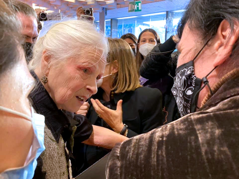 Als genau das von den beiden Künstlern Michelangelo Pistoletto und Oliveiro Toscani versucht wurde mit ihr zu diskutieren, fühlte sie sich anscheinend hinterfragt und angegriffen, so dass sie lautstark und wortwörtlich entgegenete: "Fuck you!", was absolut peinlich und beleidigend war, aber von ihren Fans begeistert gefeiert wurde. Für mich völlig unverständlich: Schließlich hat ja gerade der "böse" Kapitalismus dazu beigetragen, dass Westwood heute so berühmt und reich ist und bei ihren Modeshows herrscht allergrößte Konkurrenz. Ein Widerspruch, den sie nur schlecht erklären kann.